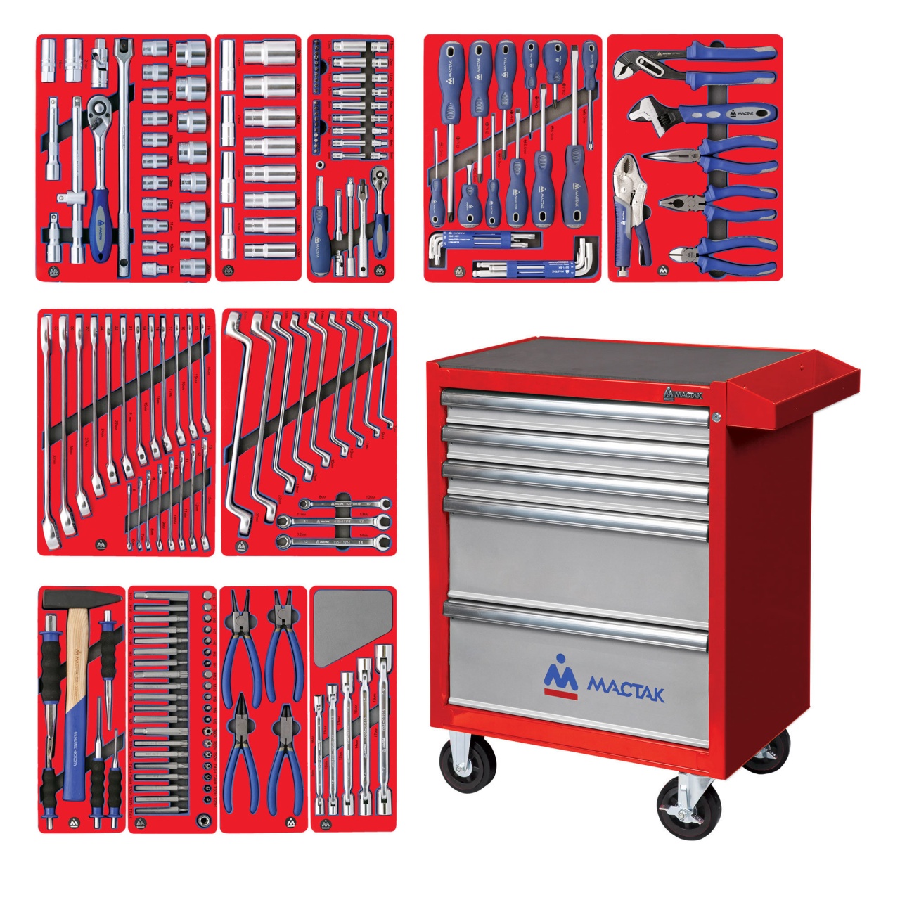 ----Набор инструментов "МАСТЕР 205" в красной тележке, 205 предметов МАСТАК 52-05205R