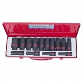 Набор ударных удлиненных торцевых головок для проведения слесарно-монтажных работ с механическим приводом ударного действия, высоконагруженными или осложненными резьбовыми соединениями.