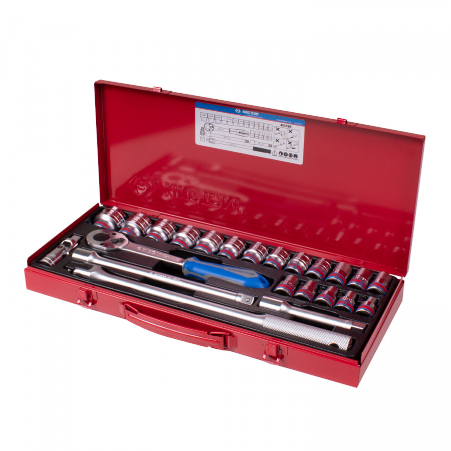 Набор торцевых головок с принадлежностями 1/2", шестигранные, 3/8-1&1/4", 23 предмета KING TONY 4531SR