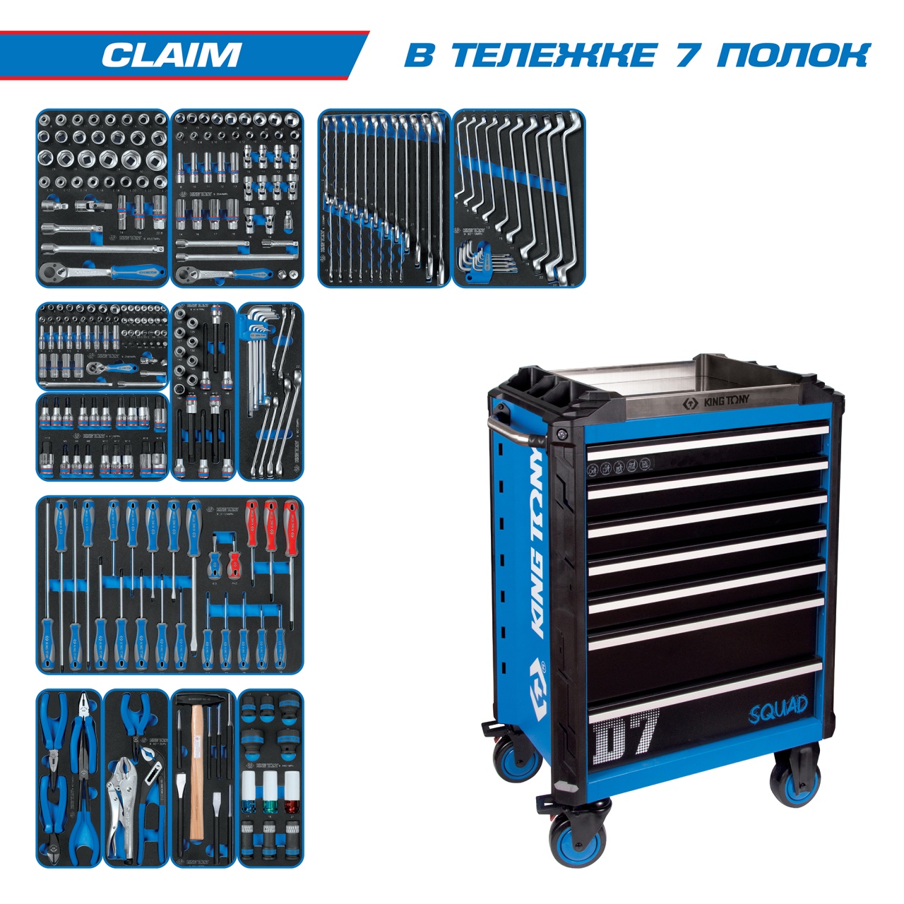 Набор инструментов "CLAIM" в синей тележке, 286 предметов KING TONY 9SQ31-286MRV
